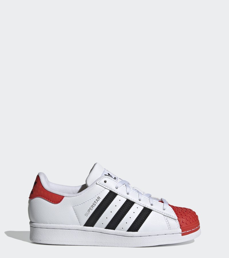 Style, fun and comfort is not a bad combination to have. Superstar LEGO® shoes feature iconic 3-Stripe branding and playful design details with LEGO brick-inspired texture on the shell-toe and heel-tab. Comfortable sockliners have been designed to allow for wearing around the clock – ideal for patio-to-playground scenarios.