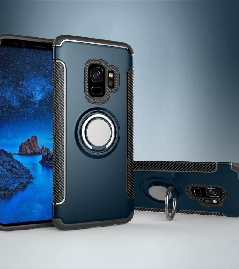 For Samsung Galaxy S9 / S9 Plus Phone Case, Luxury Magnetic Armor Silicone Cover Metal Ring Hard Casing