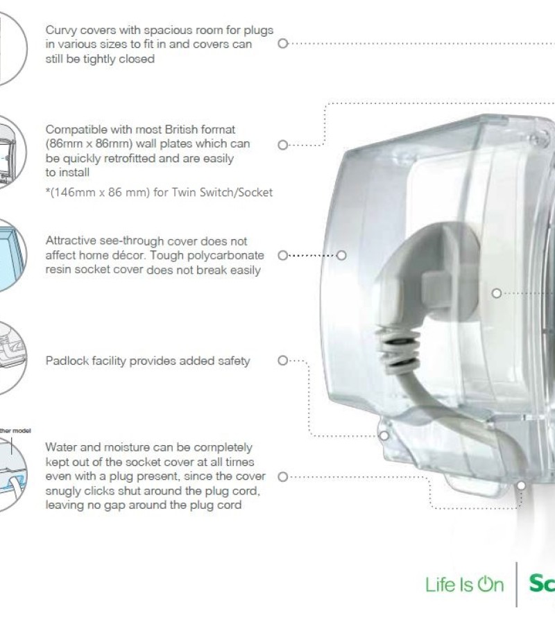 施耐德电气卡瓦查防风雨插座盖开关保护器1G 2G 1Gang 2Gang防水