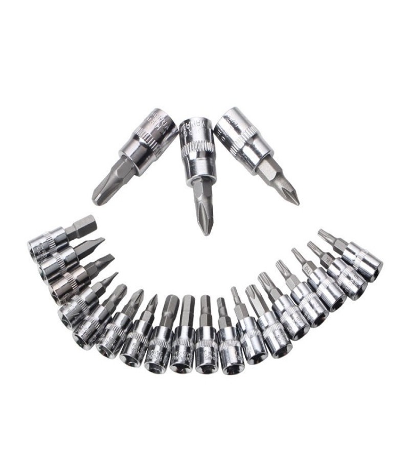 This set consists of Ratchet Wrench Hex Torx bits universal joint socket adapters flexible extension