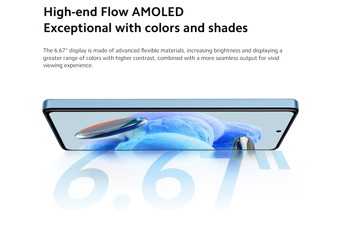 Redmi Note 12 Pro 5GKey Fuatures 50MP Sony IMX 766 Camera + OIS Triple Camera Setup Experience extraordinary visuals on the 120Hz Pro AMOLED Displaywith variable refresh rate which automatically switches to match the content on the screen Massive 5000mAh BatteryFull Day's Charge In 15 Minutes Powerful performance with MediaTek Dimensity 1080 5G 8GB RAM+256GB ROM