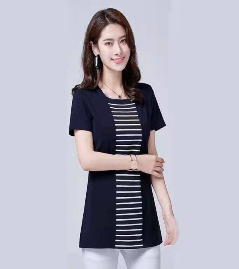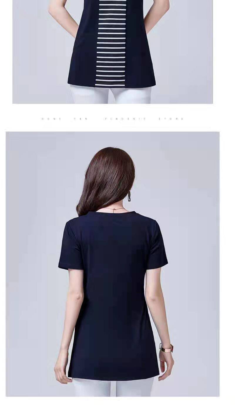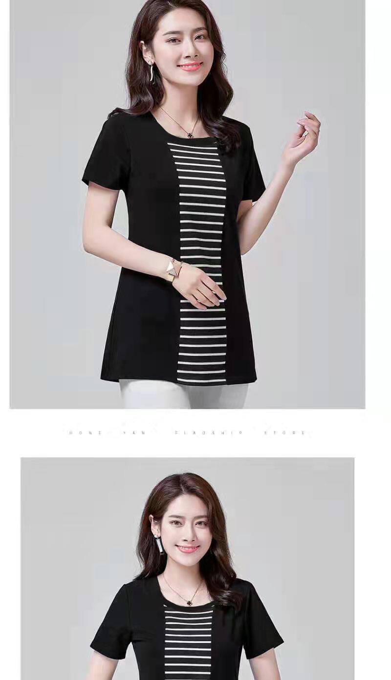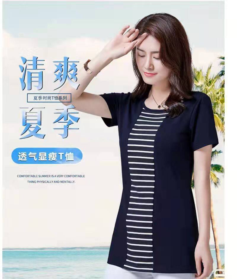 100KG胖女可穿2022新款韩式条纹长袖T恤女式短袖加大码盖腹圆领时尚T恤连衣裙优雅衬衫女式T恤