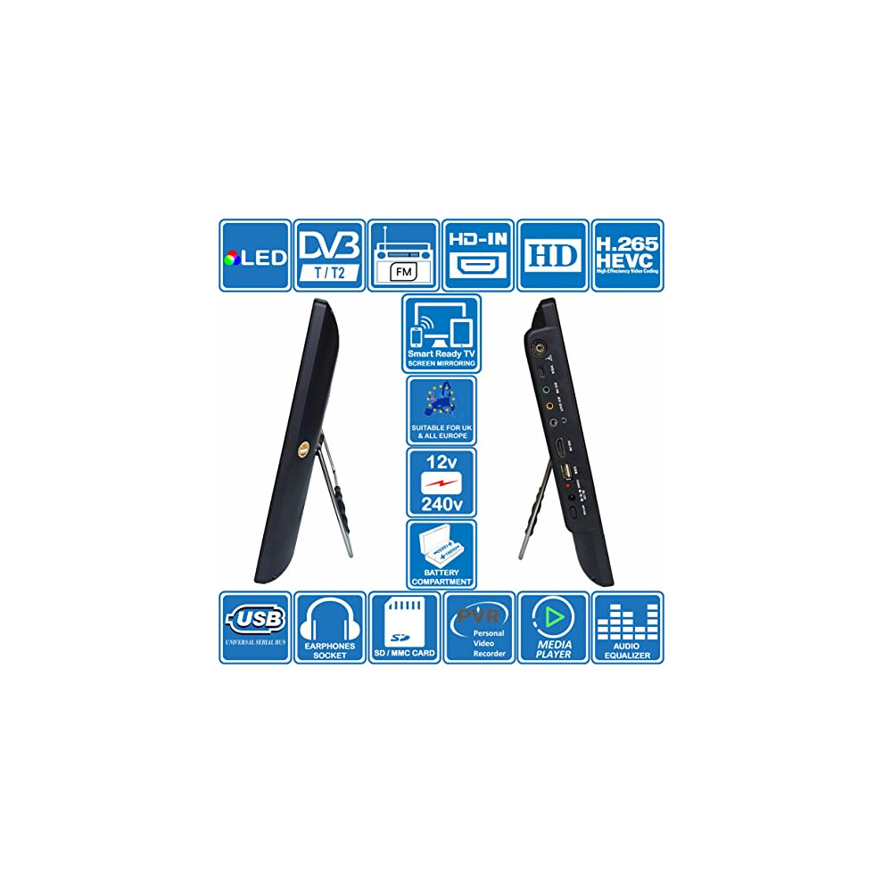 • 2023YEARMODEL:SmartReadyTVConnectyoursmartphone,tablet,iPadviascreenmirroringtechnology.14"DIGITALLEDTV:withDVB-T/T2forFreeviewHDandallEuropeFreetoTheAirTV.HDMIinput,3.5mmAudioVideoIn/Out,USBPVR&MediaPlayerandbuilt-inFMTunerRadio.